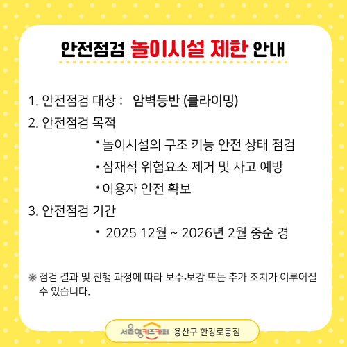실내놀이터 대청소기간 안내