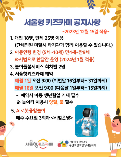 서울형키즈카페 공지사항 (23.12.15적용)